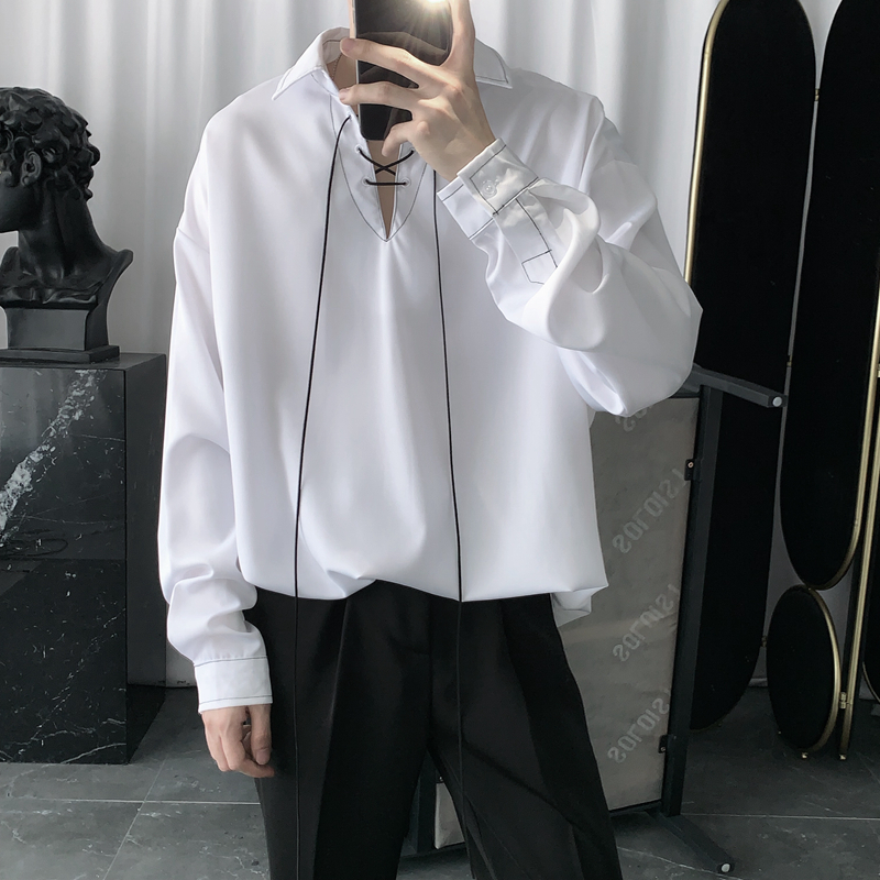 Polo Shirt Fashion Drawstring Strap Design Male Korean Blouse Tops Casual Long Sleeve For Men Shirts V Neck Mens Apparel Shopee Philippines